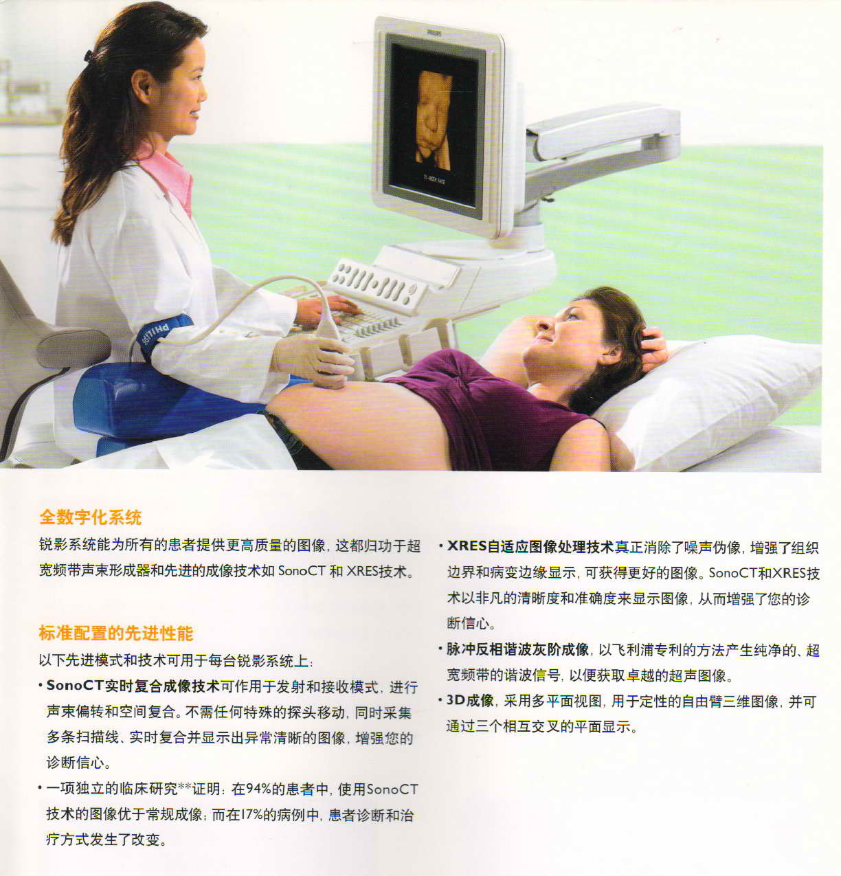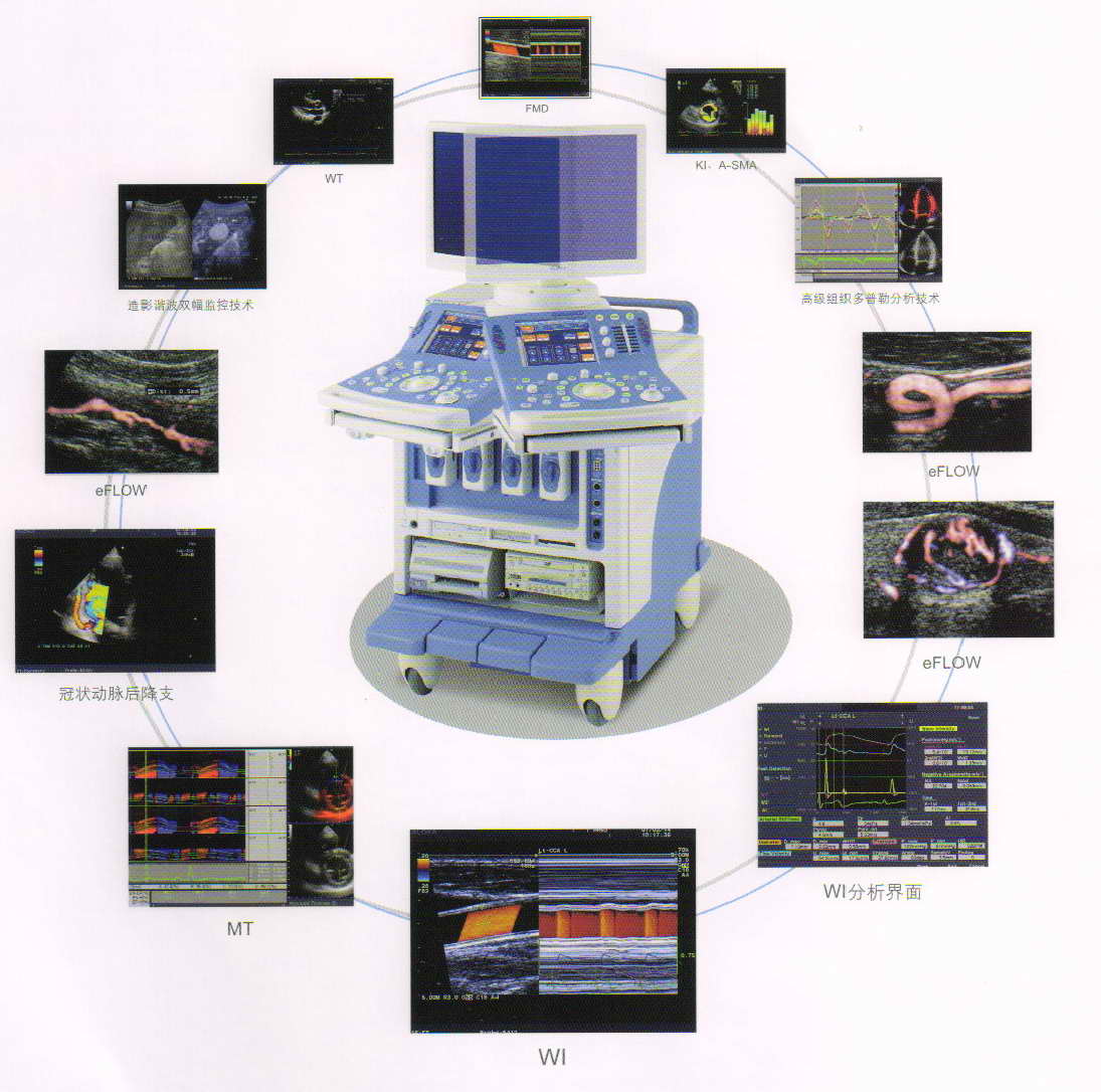 我院新购进2台阿洛卡和1台飞利普彩色B超 一、全数字化系统 二、标准配置的先进性能 三、自动优化技术 四、自适应图像处理技术 五、高分辨率超宽视野成像 六、先进的心血管检查功能