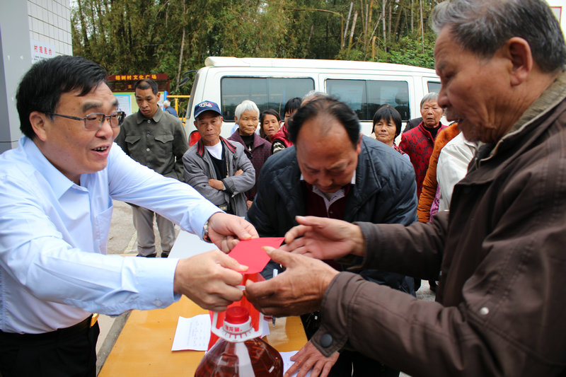 1月19日上午,bt365体育在线投注组织到精准扶贫挂钩村水寨镇榕树村开展困难党员和贫困户春节慰问活动,曾立元副院长、刘子章副院长和周文峰院长助理等参加了此次慰问活动,慰问活动在村委举行,周文峰院长助理在慰问活动上作了讲话,此次慰问给9户困难党员以及65户贫困户送上春节慰问金和生活物品,带去节日祝福和关心。