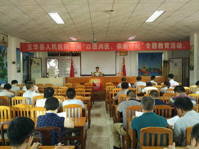 院长要求,全院干部职工要提高认识,增强学习教育的自觉性;要明确要求,以“以德润医、崇廉守纪”专题活动为主题,围绕“两学一做”学习教育常态化制度化和纪律教育学习月活动,按照“转职能、转方式、转作风”的要求,以保障人民群众身体健康为出发点,满足人民群众健康获得感、增进和谐医患关系为目标,深入开展党性宗旨教育、党规党纪教育、优良作风教育,大力推行医疗卫生系统行业作风建设,弘扬和践行社会主义核心价值观,笃行“孝悌忠信礼义廉耻”客家传统文化,强化医德医风建设和行业自律,打造一支党和政府放心、人民满意的医疗队伍,为打造健康五华和建设卫生强县提供有力支撑。