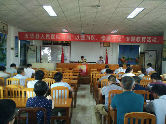 会议学习了市卫计局《关于在全市医疗卫生系统开展“以德润医、崇廉守纪”专题教育活动的通知》和县卫计局《关于在全县医疗卫生系统开展“以德润医、崇廉守纪”专题教育活动的通知》等文件精神。李惠涛院长和彭志文党总支副书记在专题教育活动上作了讲话。